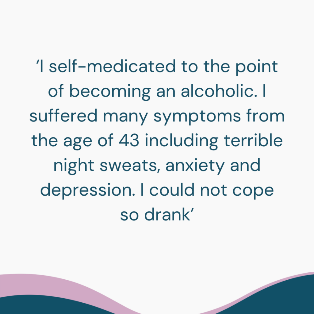 Managing menopause symptoms and a lack of access to menopause treatments were the main reasons driving women to drink more according to the online responses. Some 70% of the women surveyed cited anxiety, stress or depression as the reason for doing so, with several women describing alcohol as ‘an escape’.